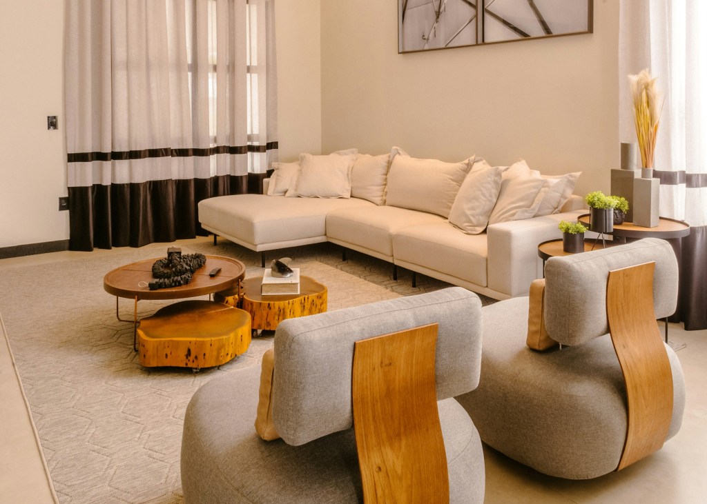 Naturalne światło jest kluczowe w stylu japandi – duże okna i jasne zasłony pozwalają na jego maksymalne wykorzystanie.